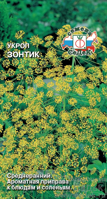 Среднеранний (от полных всходов до уборки на зелень 33-40 дней, на специи – 62-85 дней) высокоурожайный сорт. Растение высокорослое, до 1 м, полураскидистое, образует крупный зонтик. Листья среднерассеченные, с сильным ароматом и отличными вкусовыми качествами. Ценность сорта: дружное формирование сочной и нежной зелени, высококачественного сильно ароматного зонтика, продолжительный период хозяйственной годности. Рекомендуется для сушки, замораживания, приготовления разнообразных приправ, засолки и маринования. Очень ароматные зонтики незаменимы в засолке и мариновании овощей, грибов.