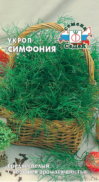 Среднеспелый (от всходов до уборки на зелень 38-42 дня, на специи – 70-80 дней) сорт. Растение раскидистое, сильнооблиственное, в фазе цветения высотой 100-130 см. Розетка листьев полуприподнятая. Листья среднего размера, зелёные, средне рассеченные. Ароматичность хорошая. Урожайность на зелень 2,5-3,5 кг/м2. Ценность сорта: дружное формирование сочной и нежной зелени, высокое качество сильно ароматичного зонтика. Рекомендуется для сушки, замораживания, приготовления разнообразных приправ, засолки и маринования.