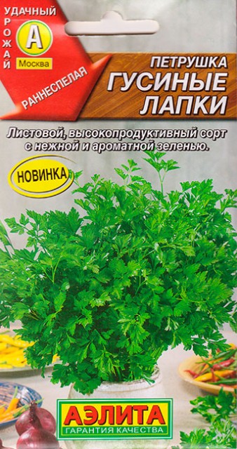 Раннеспелый сорт листовой петрушки, очень быстро отрастающий после срезки. Выборочно листья начинают убирать когда растения достигнут высоты 10-15 см. К сплошной уборке приступают на 55-60 день после всходов. Розетки мощные, высотой 30-45 см, массой 100- 120 г. Листья крупные, нежные, сочные и очень ароматные. Их широко используют в свежем виде для различной кулинарии, консервирования, сушки и замораживания. Осенью можно пересадить часть растений в горшок и поставить на подоконник, где они будут давать зелень еще 2-4 мес. Урожайность 3,5-4 кг/м2.