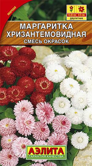 Роскошная смесь маргариток с очаровательными, махровыми соцветиями д 4-5 см. Растение формирует компактную прикорневую розетку листьев с цветоносами высотой 15-20 см. Многолетнее и зимостойкое по природе, в цветоводстве оно часто используется в качестве двулетнего. Смесь подойдет для контейнерного озеленения, оформления ярких бордюров в саду, окаймления небольших водоемов. Пушистые «шапочки» маргариток украсят альпийские горки, низкорослые садовые цветники.