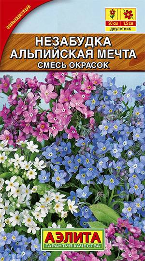 Великолепный, неприхотливый, зимостойкий двулетник. Кустики компактные, высотой 20-30 см. Мелкие цветочки д 1,5 см собраны в рыхлые соцветия-завитки. Цветение очень обильное, около 50 дней. Смесь рекомендуется для оформления весенних цветников (подбивка тюльпанов и нарциссов), окантовки декоративных водоемов, для мавританского газона и контейнерной культуры.