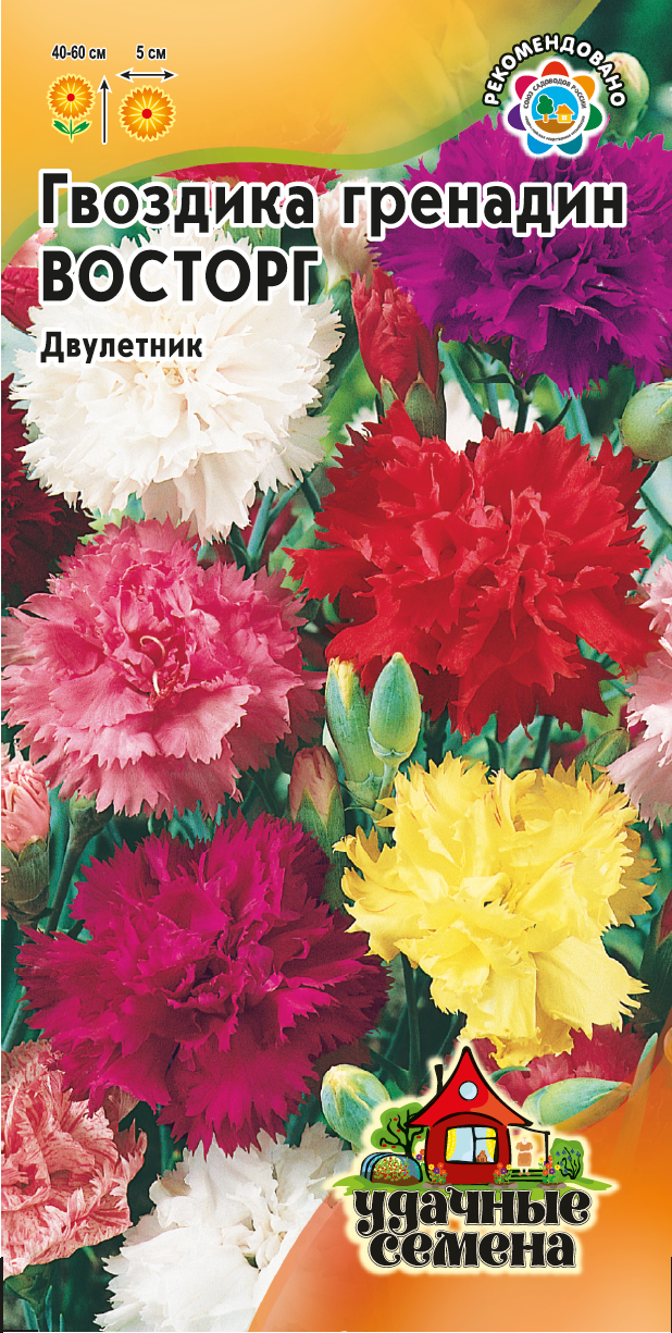 Популярное двулетнее травянистое растение для любительских цветников, формирует хорошо развитые кустики 40-60 см высотой. Стебли прямые, тонкие, коленчатые, облиственные. Листья узколинейные, прикорневые собраны в основании куста в розетку. Листья и стебли покрыты серебристо-сизым налетом. Цветки махровые, до 5 см в диаметре, расположены на концах побегов, самой разнообразной окраски, с тонким ароматом. Используют для всех видов цветников и качественной срезки, в воде гвоздика долго сохраняет декоративность.