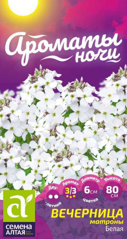 Неприхотливый декоративный двулетник, известный также под названием «ночная фиалка» за особое благоухание в вечернее и ночное время. Кусты прямостоячие, ветвистые, высотой 70-80 см, украшены многочисленными кистями из небольших белых цветков. Хорошее фоновое растение, душистое, больше подходит для садов в пейзажном стиле.