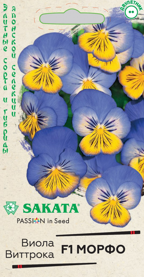 Бесподобное сочетание ультрамаринового и желтого оттенков сделало этот гибрид неоднократным победителем и призером международных выставок цветов. Свое небычное название Виола F1 МОРФО получила в честь редкой и красивой бабочки с таким же экзотическим окрасом. Растение образует компактный густооблиственный кустик с крупными цветками диаметром 6 см. Цветет обильно и продолжительно с мая по сентябрь. Виола влаголюбива, холодостойка, хорошо растет на солнце и в полутени. Для получения растений, цветущих в год посева, семена высевают на рассаду в феврале-марте. Всходы появляются через 5-7 дней. В открытый грунт рассаду высаживают в конце апреля-начале мая на расстоянии 20 см. Хорошо переносят пересадку в цветущем состоянии. При посеве в открытый грунт в июне-июле, цветение наступает во второй год. Используют для посадки на клумбы, в рабатки, балконные ящики и садовые вазы.