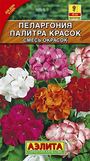 Пеларгония (в просторечии “герань”)- известное и любимое комнатное растение. Смесь ”Палитра красок” подходит не только для выращивания дома, но и для украшения сада. Кусты крепкие, прямостоячие, высотой 35-45 см, обильно украшены крупными ароматными соцветиями Ø12-15 см с весны до осени. Пеларгонии неприхотливые, светолюбивые (но мирятся с небольшим затенением), достаточно засухоустойчивые. Растут быстро. Широко используются для выращивания в горшках и балконных ящиках, прекрасно смотрятся на клумбах, в рабатках и бордюрах.
