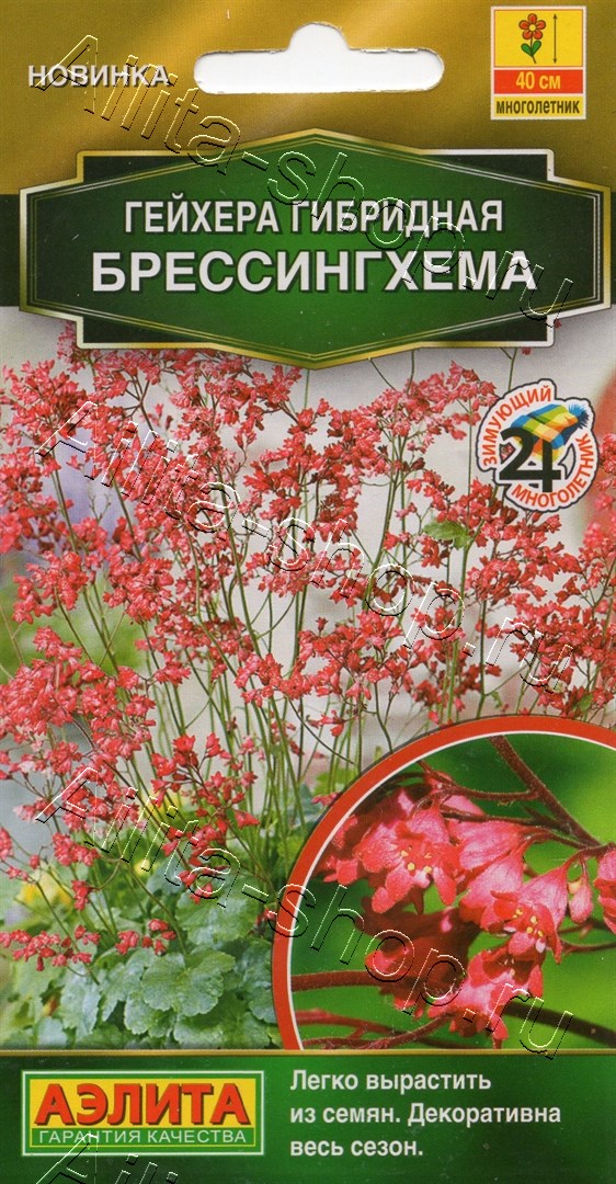 Декоративно-лиственный многолетник. Хорошо переносит зимние холода. Гейхера, выращенная из семян, обладает комплексной устойчивостью к неблагоприятным факторам среды. Она формирует аккуратные плотные розетки листьев высотой около 10 см. Летом из них появляются тонкие цветоносные побеги длиной до 40 см. Миниатюрные милые цветки на фоне изумрудной зелени выглядят изысканно и колоритно. В саду сорт украсит каменистые горки и миксбордеры. Его часто высаживают в виде окантовочной культуры, потому что листья гейхеры остаются зелеными вплоть до снежного покрова.