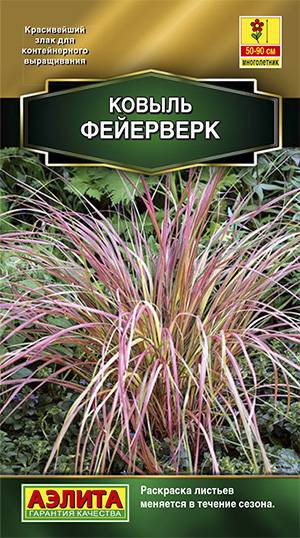 Эффектный многолетний злак 50-90 см высотой. Впечатляет раскраской листьев, которая, как у хамелеона, меняется в течение сезона. Темно-зеленые в мае-июне, кожистые листья к августу окрашиваются в золотой, розовый, оранжевый, красный и коричневый тона. Ажурные зеленовато-пурпурные колоски с июня по сентябрь образуют над кустом легкий живописный «туман».Ковыль ФЕЙЕРВЕРК создан для роли солиста, настолько он красив и необычен. Он идеально подходит для объемных садовых вазонов, центра приподнятой клумбы, альпийской горки. Одиночное растение или небольшие группы хорошо смотрятся на фоне газона. Соцветия используются в срезке для живых и сухих цветочных композиций.