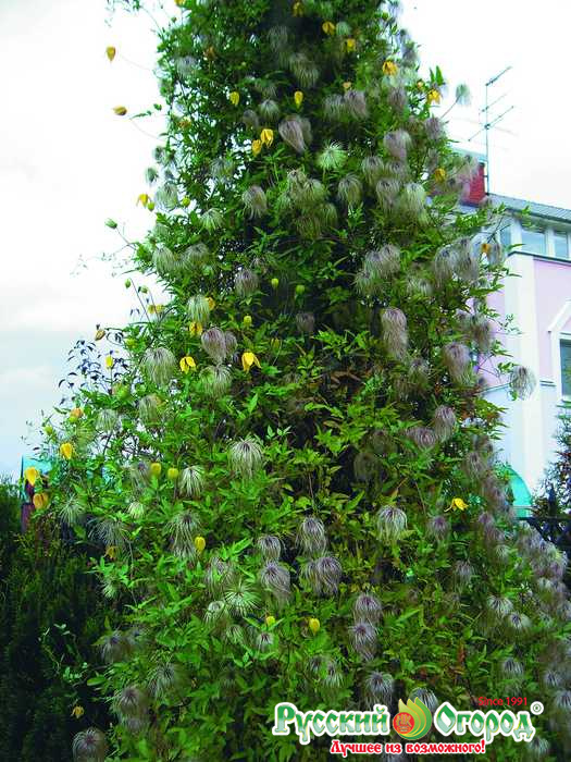 Неприхотливая лиана с поникающими ярко-желтыми соцветиями и пушистыми серебристыми соплодиями, образующимся по окончании цветения. Пригодна для всех видов вертикального озеленения и для выращивания в горшках. Зимостойка. 300 см.