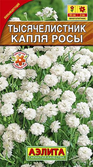 Неприхотливый многолетник с ползучим корневищем. Самый своеобразный из тысячелистников. Листья у него цельные, а не рассеченные на тонкие сегменты. Цветки перламутрово-белые, махровые, Ø 1,5-2 см. Компактные прямостоячие кусты хорошо разрастаются. Растение очень изменчиво: если лето сухое и солнечное, то габитус приземистый и густой, если дождливое – то высокий и стройный. Средняя высота куста 60 см. Используется для оформления миксбордера и на срез, в т. ч. в сухие зимние букеты.