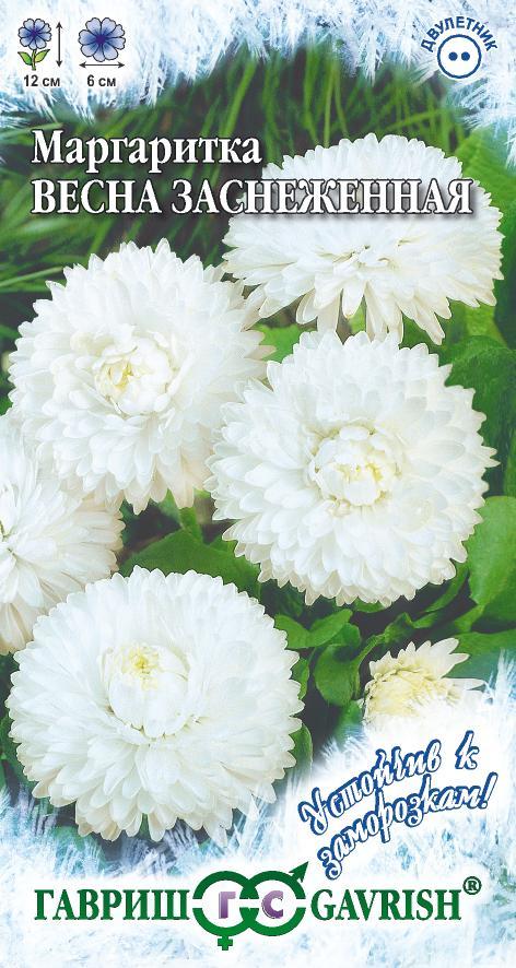 Неприхотливое, очень зимостойкое растение из семейства Астровые высотой12 см. Розетка листьев компактная. Соцветия необычно крупные, до 6 см, изящные, «лучистые», белой окраски. Цветет в апреле-июле, при хорошем уходе цветение продолжается до осени с перерывом в жаркий период сезона. Маргаритка прекрасно подходит для выращивания на клумбах, в рабатках и бордюрах, а также в горшках и балконных ящиках.