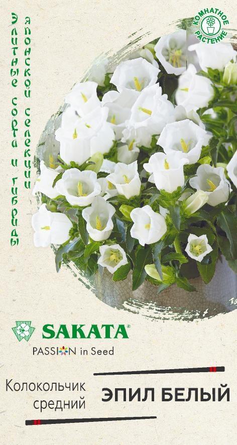 Удивительные колокольчики компании SAKATA привлекают компактностью, уникальной формой цветов, обильным и длительным цветением. Выращивается как горшечная культура, но можно вырастить в саду как однолетнее растение. Кустик высотой до 30 см и 25 см шириной, весь усыпан белоснежными цветками, прекрасно себя чувствует в контейнерах и вазонах. Цветут в год посева. Диаметр цветов 4-4,5 см. Посев на рассаду — с августа по февраль для цветения с января по июнь. Семена в гранулах (растворяется при увлажнении!) раскладывают (не заделывая!) по поверхности увлажненного грунта. При необходимости опрыскивают из пульверизатора. Емкость накрывают стеклом, ставят в хорошо освещенное место с температурой не ниже +18…200С. Всходы появляются через 10-14 дней. После появления всходов стекло убирают. Растения чувствительны к длине светового дня, необходимо досвечивание не менее 12 часов. Стратификация семян не нужна. Переувлажнение грунта не допускается. Пикируют в стадии 2-4 настоящих листьев.