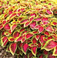 Листья растения напоминают спелый арбуз в разрезе и меняют цвет в зависимости от погоды. Сохраняет сочный окрас и свежесть листьев до заморозков. Подходит как для солнечных, так и для тенистых участков.
