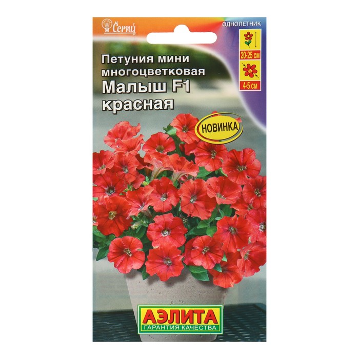 Удивительно рано и обильно цветущий гибрид петунии чешской селекции. Листвы почти не видно! Высаженные на постоянное место растения быстро обра зуют ветвистые компактные кустики ? 25-30 см. Множество ярких цветов-граммофончиков диаметром 4-5 см в течение всего сезона будут украшать ваши цветники и рабатки, балконные ящики и вазоны. Петунии лучше всего растут в рыхлой, питательной и влагоемкой почве. Периодические подкормки комплексным удобрением делают цветение более обильным. Центр куста не оголяется и растение не нуждается в формировании и прищипке. Гибрид устойчив к наиболее распространенным болезням культуры.