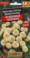 Популярный белоснежный сорт бархатцев. Растения крепкие и кустистые, высотой до 40 см. С начала сезона и до заморозков вас будут радовать «облака» из множества крупных махровых соцветий, диаметр которых достигает 7-8 см. Бархатцы замечательно растут в ограниченных объемах. Не боятся дождя и ветра. Отлично выглядят в сборных цветниках, рабатках и вдоль бордюров.