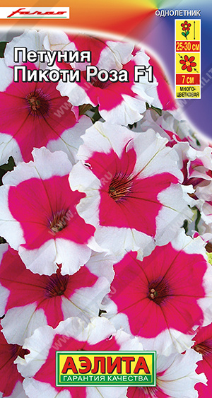 Многоцветковая петуния от итальянской компании Farao с белой окантовкой венчика, которая придает цветкам торжественный и нарядный вид. Обильноцветущие, компактные кусты высотой около 25-30 см оживят любой уголок сада, наполнят его яркими красками. Цветки ? 6-7 см необыкновенно стойко, по сравнению с петуниями из группы грандифлора, переносят непогоду. Они не теряют форму и декоративность от сильных дождей и ветров, обильных поливов. Гибрид идеально подходит для контейнерного выращивания на балконах и террасах. Прекрасно смотрится в садовых цветниках – бордюрах, рабатках, на клумбах. Степень выраженности окраски «пикоти» зависит от погодных условий.