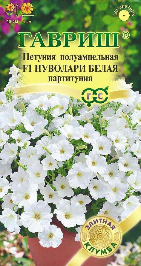 Итальянская серия «Нуволари» включает в себя петунии с абсолютно новой полу-ампельной формой. Исключительность этих гибридов в том, что довольно длинные побеги полностью укрыты от взоров роскошными белыми цветками направленных строго вверх. Такая особенность позволяет избегать образования пустот в каскаде, часто свойственных ампельным формам. Благодаря этому растение, высаженное в подвесные корзины или в балконные ящики похоже на огромный плотно-цветущий шар.