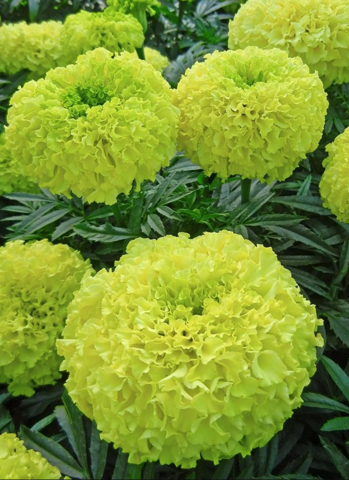 Бархатцы Ацтек Лайм-Грин F1 – уникальный и столь необычный образ всем нам знакомых цветов! Яркие сочные соцветия в оттенке лайма готовы скрасить любые цветники, состоящие из одних бархатцев, а также других самых разных культур. Они будут идеальны в миксбордерах, причём даже если у вас уже есть полностью сформированный миксбордер, куда вы не планировали ничего высаживать. Зелёные цветы бархатцев не нарушат общего фона композиции, не будут агрессивно конкурировать с растениями вокруг, зато смогут сделать посадки более плотными, что всегда смотрится очень роскошно. Одним словом, вы просто не можете обойтись без данного новомодного растения!