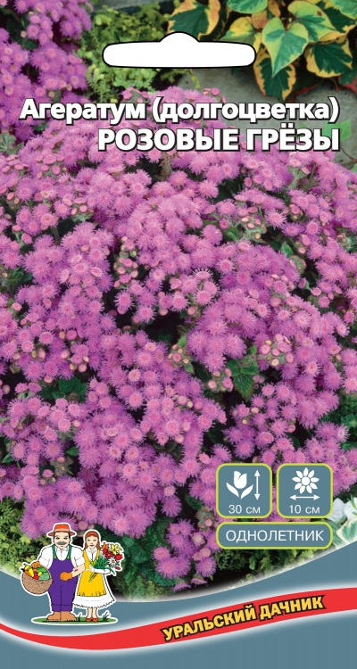 Компактное растение высотой до 30 см, шаровидной формы, с аккуратными, пушистыми, розовыми соцветиями и крупными листьями. Цветки мелкие, душистые, собраны в небольшие соцветия-корзинки, которые, в свою очередь, собраны в сложные щитковидные соцветия до 10 см в поперечнике.