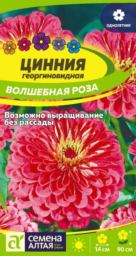 Великолепный яркий однолетник. Образует мощный разветвленный куст высотой до 90 см, с множеством крупных георгиновидных соцветий ярко-розовой окраски диаметром до 14 см, состоящих из широких язычковых цветков, собранных в четкие круги. Создаст в саду выразительный цветовой акцент. Используют в цветочных садовых композициях, при оформлении клумб и миксбордеров, великолепна в срезке.