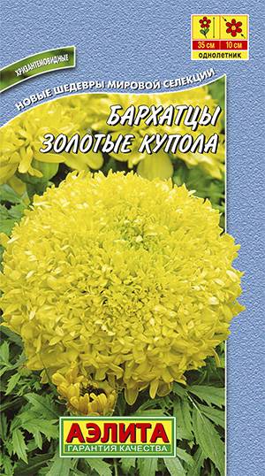 Прекрасный оформительский сорт бархатцев прямостоячих. Растения компактные, высотой 30-35 см, с хорошим базальным ветвлением. Соцветия хризантемовидные, густомахровые, очень крупные — Ø 8-10 см. Нарядные кусты идеально подходят для контейнерной культуры, бордюров, клумб, рабаток. Цветение раннее, обильное, продолжительное.