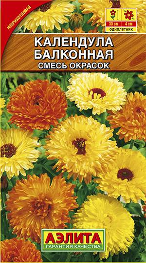 Превосходная раннецветущая смесь низкорослой календулы. Ценится за компактные размеры куста и возможность выращивания в балконных контейнерах, подоконных ящиках, в горшках. Кусты высотой до 30 см, прямостоячие, хорошо разветвленные, густооблиственные. Цветение обильное. Соцветия-корзинки махровые, диаметром 4-5 см. Контрастный, темный центр соцветий и приятный, терпкий аромат растений – дополнительные плюсы к декоративности смеси.