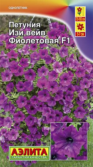 Знаменитый ампельный гибрид с обильным цветением от американской компании PanAmerican Seed. Серия Изи вейв F1 принадлежит к группе многоцветковых пе туний. Растение формирует цветущий «ку пол» высотой 20-25 см над кашпо и ин тенсивно наращивает плети длиной 75-100 см. В ландшафтном варианте образует сплошной красочный ковер высотой 15-30 см, в зависимости от расстояния между кустами. Цветки имеют нежный фиалковый аромат. При контейнерном выращивании необходимо обеспечить не менее 7-8 л грунта на одно растение.