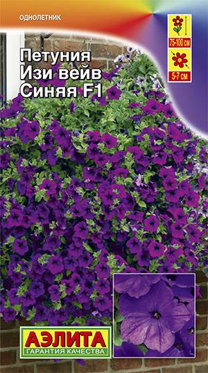 Знаменитый ампельный гибрид с обильным цветением от американской компании PanAmerican Seed. Серия Изи вейв F1 принадлежит к группе многоцветковых пе туний. Растение формирует цветущий «ку пол» высотой 20-25 см над кашпо и ин тенсивно наращивает плети длиной 75-100 см. В ландшафтном варианте образует сплошной красочный ковер высотой 15-30 см, в зависимости от расстояния между кустами. Цветки имеют нежный фиалковый аромат. При контейнерном выращивании необходимо обеспечить не менее 7-8 л грунта на одно растение.