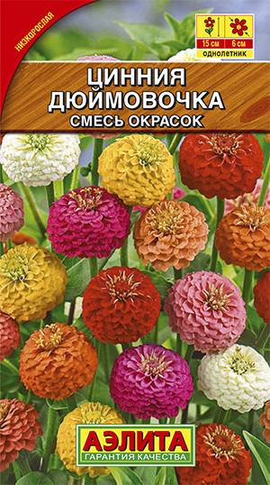 Низкорослая, яркая смесь махровых и полумахровых сортов цинний. Кустики компактные, густоветвистые, высотой 15-20 см. Соцветия диаметром 5-6 см. Цветение обильное. Каждый цветок держится на растении более месяца. Используется для групповых и одиночных по садок на клумбах, в рабатках и бордюрах. Подходит для выращивания в горшках и балконных ящиках.