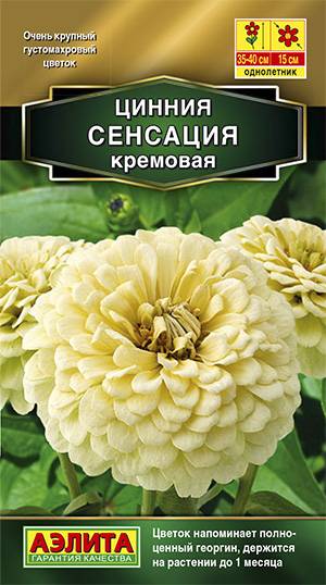 Циннии СЕНСАЦИЯ – результат успешной селекции на очень крупный густомахровый цветок ( Ø 15 см). Едва ли вы найдете такое же крупное соцветие у других сортов и даже у гибридов. Напоминающий полноценный георгин, эффектный цветок держится на растении свыше месяца. Крепкие раскидистые кусты 35-40 см высотой красиво смотрятся в одиночных посадках и в компании других летников в среднем ярусе миксбордера. Букеты из цинний СЕНСАЦИЯ долго стоят в воде и, несомненно, смесь будет интересна профессиональным срезочникам.