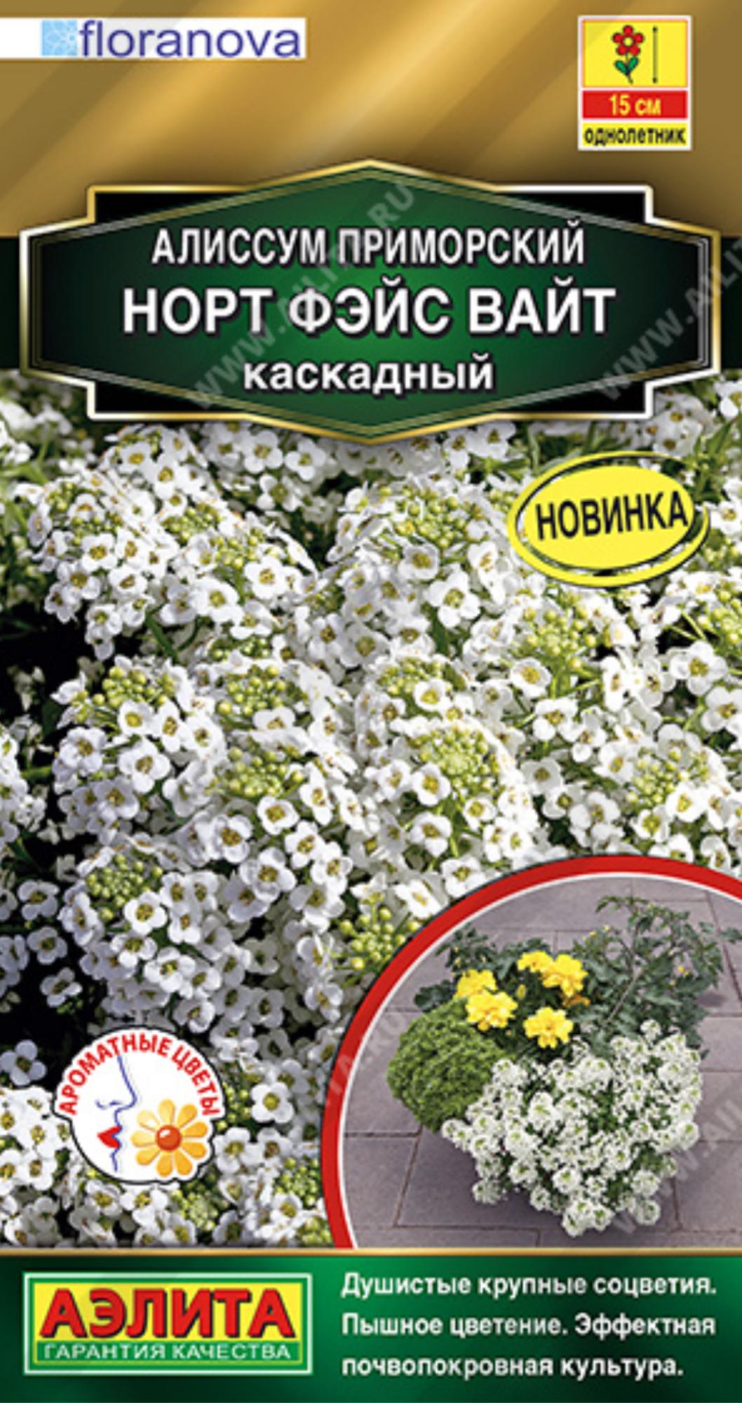 Непревзойденный крупноцветковый тетраплоидный алиссум от английской компании Floranova. Высокоустойчив к перепадам погодных условий. Кустики уникального каскадного типа, пышные, густые, высотой не более 13-15 см, в ширину распространяются до 30-40 см. Могут использоваться в качестве почвопокровной культуры. Эффектные ароматные цветки диаметром до 0,5 см собраны в белоснежные плотные соцветия. Сорт очень красиво смотрится в подвесных корзинах и садовых вазонах, подходит для украшения балконных контейнеров и ковровых посадок в цветниках различного типа.