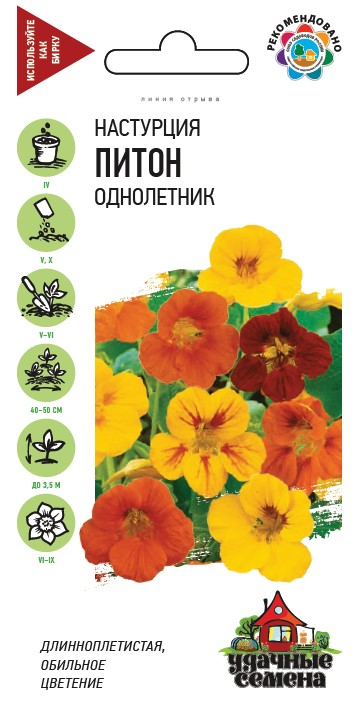 Однолетнее травянистое растение семейства Настурциевые с плетистыми побегами длиной до 3,5 м. Цветет обильно с июля до заморозков. Цветки простые 5-6 см в диаметре, разнообразной окраски. Используется для вертикального озеленения, как почвопокровное и как ампельное растение.
