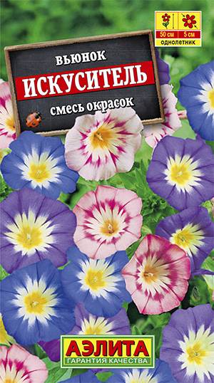 Нарядная смесь неприхотливого летника. Формирует компактные растения высотой 30-40 см, которые активно кустятся, выпуская множество боковых побегов. Вьюнок растет быстро, цветет обильно, пышно – растения буквально усыпаны яркими цветками в виде граммофончиков диаметром 4-5 см. Смесь используется в качестве почвопокровной и ампельной культуры для оформления солнечных садовых цветников, балконных контейнеров, подвесных кашпо.