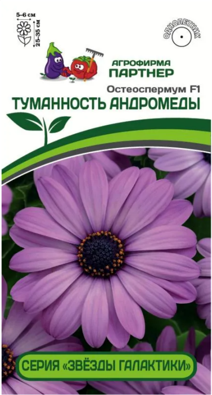 Словно мириады звезд, цветки остеоспермума сливаются в созвездия и рождают новую галактику, творцом которой являетесь вы сами. Серия ЗВЁЗДЫ ГАЛАКТИКИ – новый фаворит сада с максимально длительным и обильным цветением! Благодаря отличному кущению, растения быстро набирают объем и сохраняют компактный габитус на протяжении всего периода роста. Цветки-звезды диаметром до 6 см, бесконечно, на протяжении сезона сменяют друг друга, обеспечивая длительное и стабильное цветение с июня до заморозков. Хорошо укоренившиеся растения устойчивы к жаре и засухе, а также высокоустойчивы к комплексу заболеваний. Остеоспермум пригоден для посадки в клумбы, рабатки и рокарии. Хорошо смотрится как в монопосадках, так и в сочетании с другими летниками. Является вечнозеленым растением, прекрасно подходит для контейнерного оформления террасы или балкона, где цветение может длиться круглый год. Рекомендуемый объем кашпо – от 10 л на одно растение и расстояние 35-40 см между растениями при высадке в грунт.