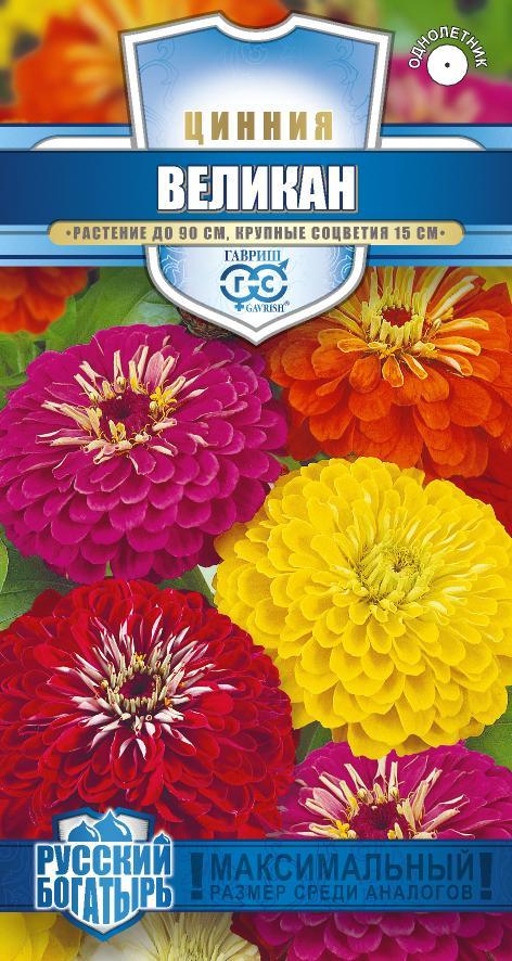 Смесь высокорослых крупноцветковых цинний для элитного оформления сада. Серия «Исполин» отличается чрезвычайно обильным и продолжительным цветением, прочными ветвящимися цветоносами, чистыми и стойкими к выгоранию тонами соцветий. Формирует приподнятые, разветвленные кусты высотой до 90 см. Соцветия георгиновидные, крупные, различных тонов, 15 см в диаметре, с высокой устойчивостью к неблагоприятным погодным условиям. Цветет с июня до заморозков.