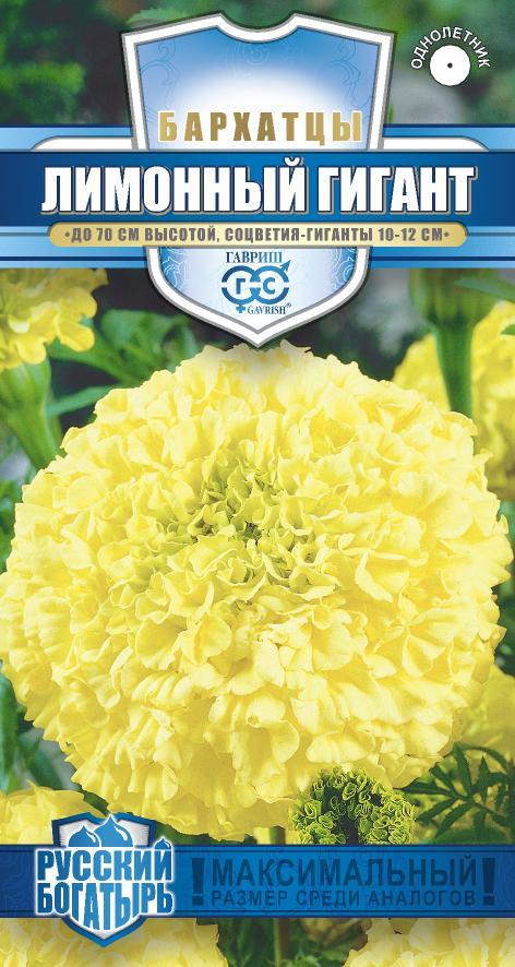 Однолетнее растение семейства Сложноцветные. Стебли прямостоячие, 55-70 см высотой, сильно ветвистые от основания. Соцветия – корзинки до 12 см в диаметре, с лимонно-желтыми многочисленными лепестками. Бархатцы используют во всех видах цветников. Они хорошо растут в горшках, вазонах, балконных ящиках, в сочетании с примулами и цинерариями. Осенью цветущие растения можно перенести в комнату, где они прекрасно растут в течение всей зимы.