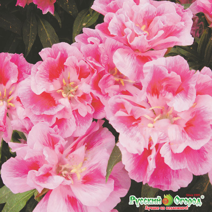 Годеция F1 сорта Русский размер относится к роду травянистых однолетних растений семейства Кипрейных; происходит из другого полушария – Южной и Северной Америки. Годеция представляет собой до 60 сантиметров в высоту кустики пирамидальной формы, которые очень эффектно смотрятся в качестве декоративных ограждений, заборчиков, цветочных бордюров.