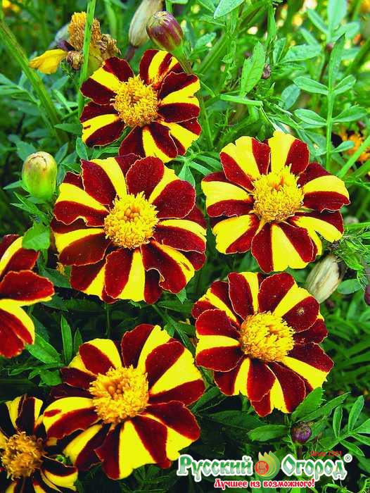Бархатцы Арлекин обладают невероятно интересными соцветиями! Яркие бархатные красно-жёлтые лепестки все посетители вашего сада будут моментально замечать на клумбе. Композиция с данными бархатцами смотрится очень аккуратно и изысканно. Ведь томный блеск бархата на лепестках создает романтический настрой, который хочется наблюдать во всех садовых посадках.