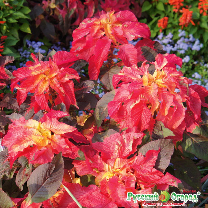 Амарант Иллюминэйшн трехцветный – изысканный быстрорастущий однолетник с ярко окрашенными листьями: благородный пурпур, переходящий в алый и золотисто-жёлтый. Растение среднерослое (около 60 см), ветвистое, образующее к концу лета роскошный куст. На клумбах смотрится сверхдекоративно, поэтому вам следует присмотреть для него особое место в саду. Может использоваться в рабатках, в качестве заднего фона миниатюрного цветника (в тёплых тонах: оранжевого, жёлтого, фиолетового, розового), в высоких бордюрах.