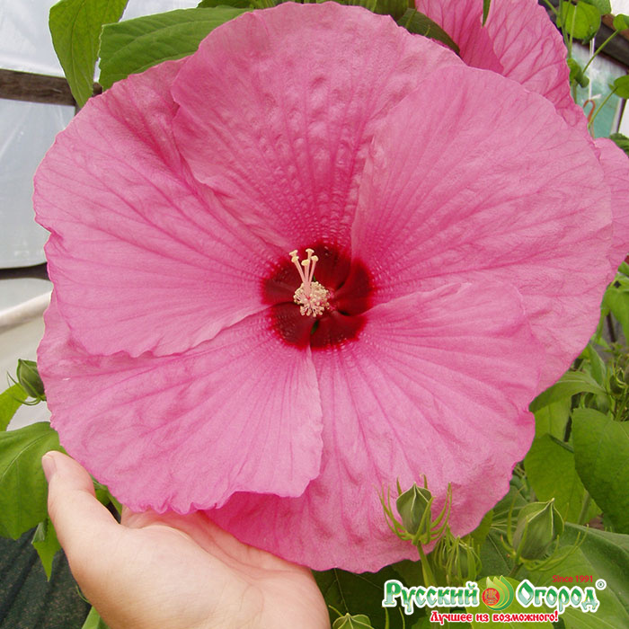 Гибискус F1 Русский Размер – один из лучших вариантов садовых декоративных цветочных растений. Предлагаемый нами вид отличается огромными, чашевидными цветами, которые в сезон цветения очень выгодно украшают собой любое садовое пространство.