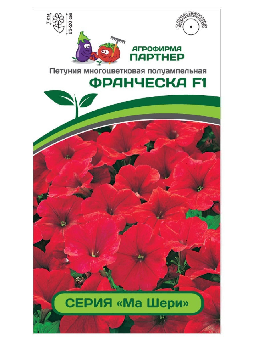 «МА ШЕРИ» – многоцветковая, непрерывно цветущая полуампельная серия петунии. Формирует многочисленные цветоносные побеги и отличается более плотным расположением цветков по всей поверхности куста. Как правило, у стандартных петуний цветение спускается каскадом вниз, обнажая голые стебли в центре растения. Представленная серия была выведена для устранения этого недостатка. Она эффектна не только в начале цветения, но и в течение всего периода вегетации, покоряя массой достаточно крупных цветков. Цветение очень обильное до глубокой осени. Обладает устойчивостью как к повышенным, так и к пониженным температурам. При высоте растения в 15-20 см, ширина куста достигает 60 см. Серия создавалась с целью использования для кашпо, подвесных корзин, а также ландшафтных композиций.