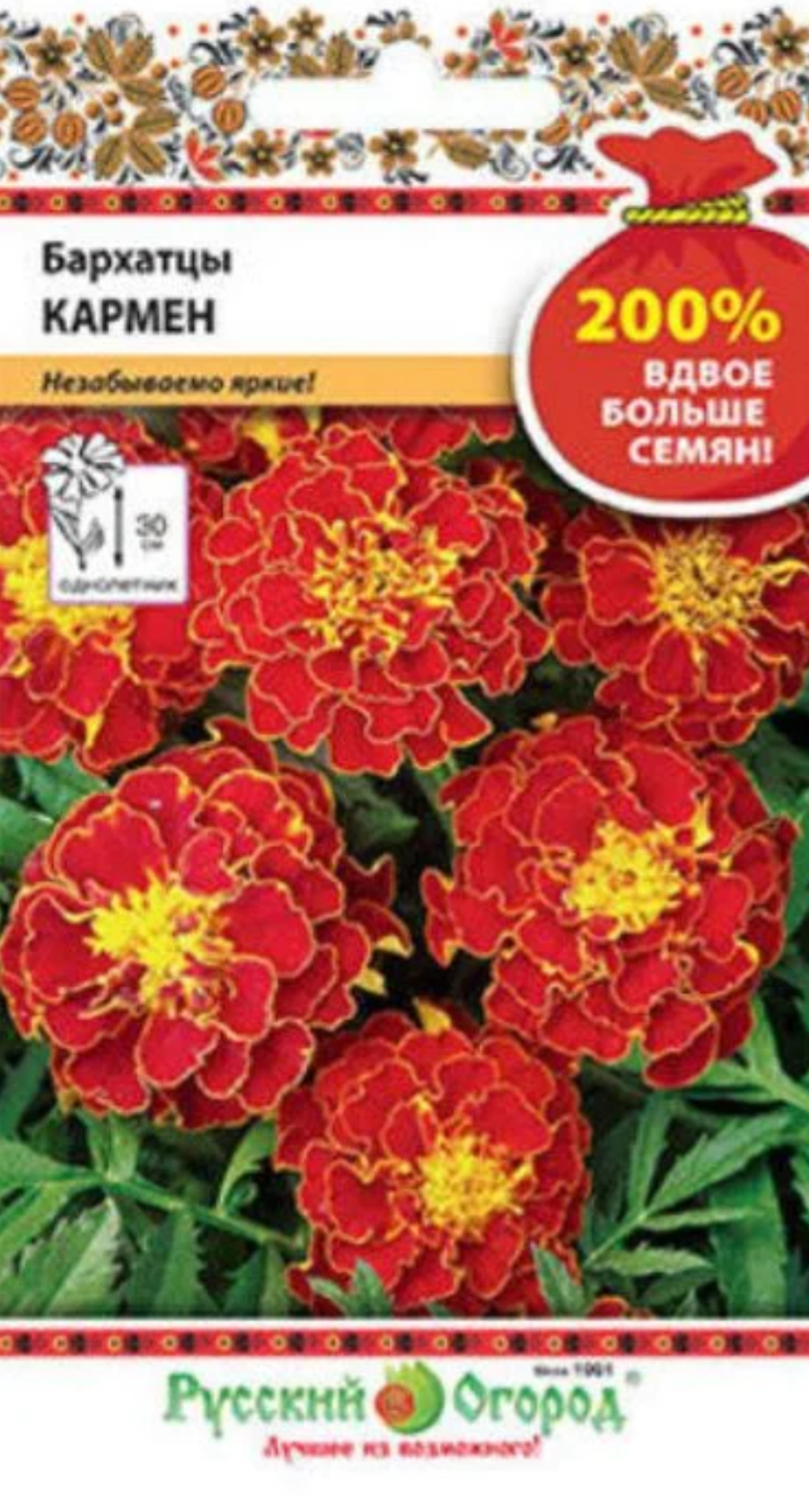 Куст компактный, высотой до 30 см. Обильно цветет махровыми цветками огненно-красного цвета с желтой серединкой. Требует плодородных, хорошо увлажненных в первой половине лета почв, при этом переувлажнения не любит. Засухоустойчив, заморозков не переносит. К освещению достаточно нетребователен, но максимальной декоративности достигает на солнечных участках. Используется для оформления клумб, рабаток, бордюров и для контейнерной культуры.