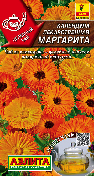 Одно из самых популярных садовых растений, известное еще как ноготки. Пользуется любовью садоводов за неповторимое очарование и легкость в выращивании. Обладает лечебными свойствами. Растения прямостоячие, высотой 50-60 см, цветут обильно и продолжительно весь сезон. Соцветия-корзинки яркие, простые и полумахровые. Для приготовления чая и настойки используют соцветия календулы, которые собирают каждые 3-5 дней, а затем высушивают. Чай из календулы — вкусный напиток, успокаивающий нервную систему, утоляющий боль, обладающий бактерицидными свойствами.