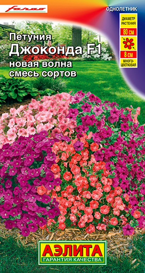 Петуния итальянской селекции компании Farao с непревзойденными характеристиками. Благодаря гену мужской стерильности она дает ошеломляющее количество цветков и непрерывно цветет с весны до поздней осени. Адаптируется к широкому диапазону температур – успешно выдерживает кратковременные заморозки до – 5 °С и экстремальную жару. Гибрид формирует мощные кусты высотой 25-30 см с интенсивным ветвлением. В ширину они достигают 60-80 см, но при регулярных подкормках вырастают значительно большего размера. Цветки диаметром 7-8 см, не травмируются дождями и сильным ветром. Петуния серии Джоконда является серьезной конкуренткой сурфиниям, которые могут размножаться только вегетативно. Украсит собой клумбы, рабатки, подвесные корзины и садовые вазы.