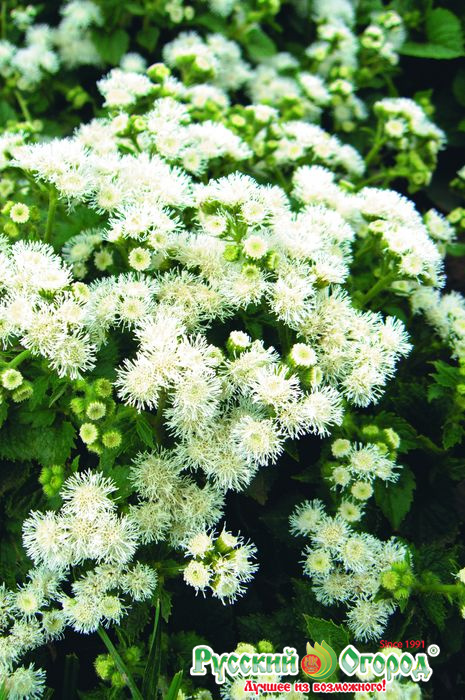 Агератум Сноу Болл славится своими белейшими соцветиями, которые выгодно смотрятся в крупном ярком цветнике. Белый цвет способен «разбавить» яркую цветочную массу, а значит сделать его гармоничнее. Цветки Сноу Болла пушистые, их очень много. Они появляются в июне и не теряют декоративности до осени. Прекрасный выбор для постоянного цветника. Агератум Сноу Болл хорошо смотрится с хостами.