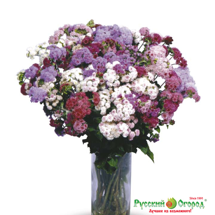Агератум Таймлесс срезочный – это необыкновенная смесь высокорослых сортов агератума самых разных расцветок! Розовые, белые, фиолетовые и синие. Отличное дополнение к миксбордеру, фактически созданы именно для этого типа цветника. Рядом с другими разноцветными растениями, а также злаками, пальмами, хвойными или хостами, будет смотреться необычайно красиво. При том, что так как сорта высокорослые, сажать их нужно будет на более дальний план. Это отличный план поиграть с цветовым сочетанием! Также в середине лета часть агератума можно срезать и поставить в вазу.