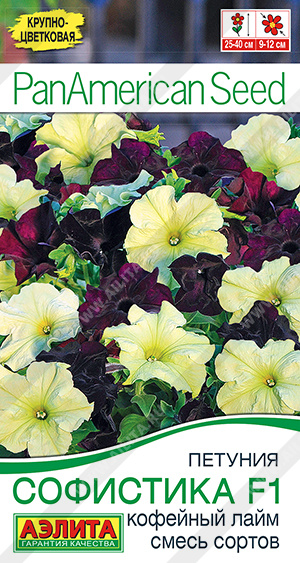Потрясающая смесь популярных расцветок Блэкберри и Лайм Грин из дизайнерской коллекции Софистика, специально создана для вашего сада. Растения характеризуются ранним пышным цветением, которое длится вплоть до заморозков. Цветки крупные, контрастные, ? 9-12 см. Куст плотный, компактный, высотой 25-40 см, шириной не более 25-30 см. Гибриды станут выразительным акцентом цветочных композиций, привлекая к себе не менее ярких бабочек.