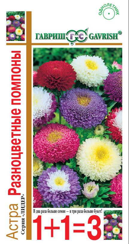 Обильноцветущая смесь однолетней астры. Растения с прочными цветоносами, высотой 50-60 см. Соцветия помпонные, диаметром 6 см. На растении до 30 соцветий. Используют для оформления цветников, клумб, рабаток и на срезку.