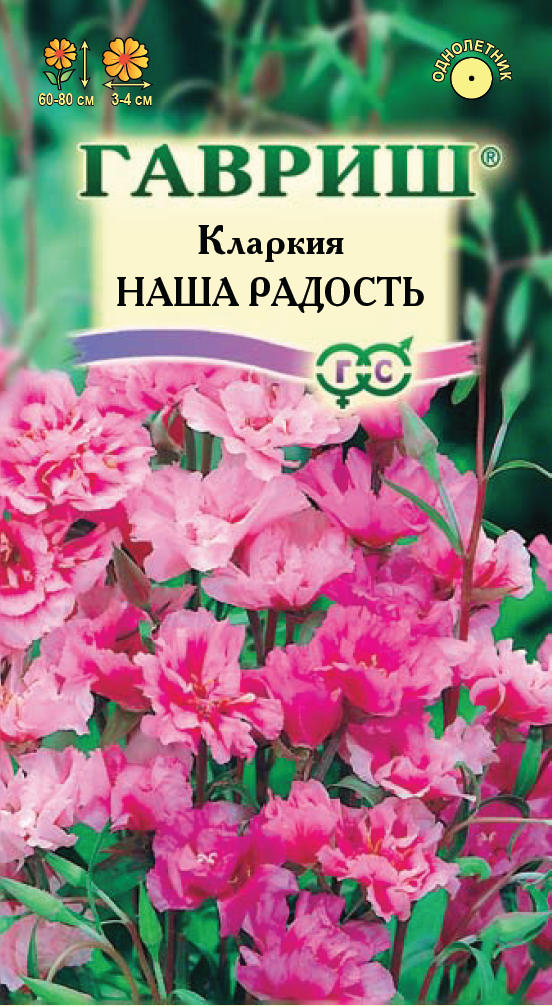 Однолетнее растение. Куст густоветвистый, объемный диаметром 36 см. Стебли тонкие, крепкие, 60-80 см высотой. Листья овальные, сизо-зеленые с красными жилками. Цветки махровые, розовой окраски, до 3-4 см в диаметре, расположены по одному в пазухах листьев. Исползуют для групповых посадок, клумб, рабаток и срезки. Особенно хороша кларкия в букетах. В срезке у кларкии распускаются все бутоны.