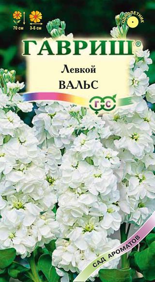 Высокорослый срезочный сорт. Растение однолетнее, из семейства Крестоцветные с травянистыми или почти одревесневшими стеблями высотой 70 см. Цветет в июне-сентябре. Цветки махровые, белые, диаметром 3-5 см, ароматные, собраны в кистевидные соцветия. Выращивают в миксбордерах, групповых посадках. Для срезки используют соцветия, раскрывшиеся на 2/3. Они стоят в воде до 10 дней, наполняя ароматом помещение.