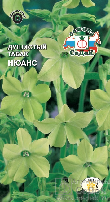 Великолепный сорт с оригинальной окраской цветков создаст в вашем саду изысканную и романтическую атмосферу, позволяющую наслаждаться прелестью его аромата в вечерние и ночные часы. Растение прямостоячее, ветвистое, высотой 60-70 см, покрыто железистыми волосками. Цветки светло-салатные, трубчатые, крупные, 5-6 см в диаметре, собраны в рыхлое метельчатое соцветие. Предпочитает открытые солнечные места с умеренно плодородными и влажными почвами, устойчиво к засухе. Используется в групповых посадках, рабатках, вазонах, для озеленения балконов, лоджий.
